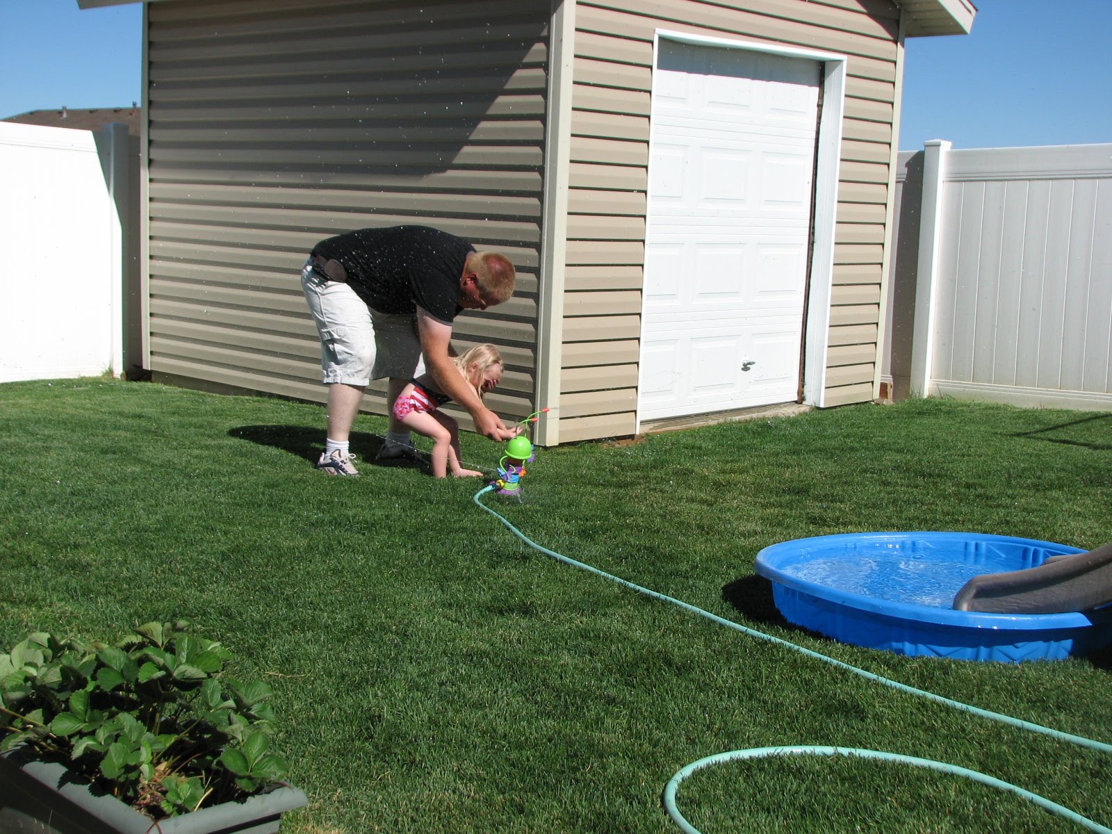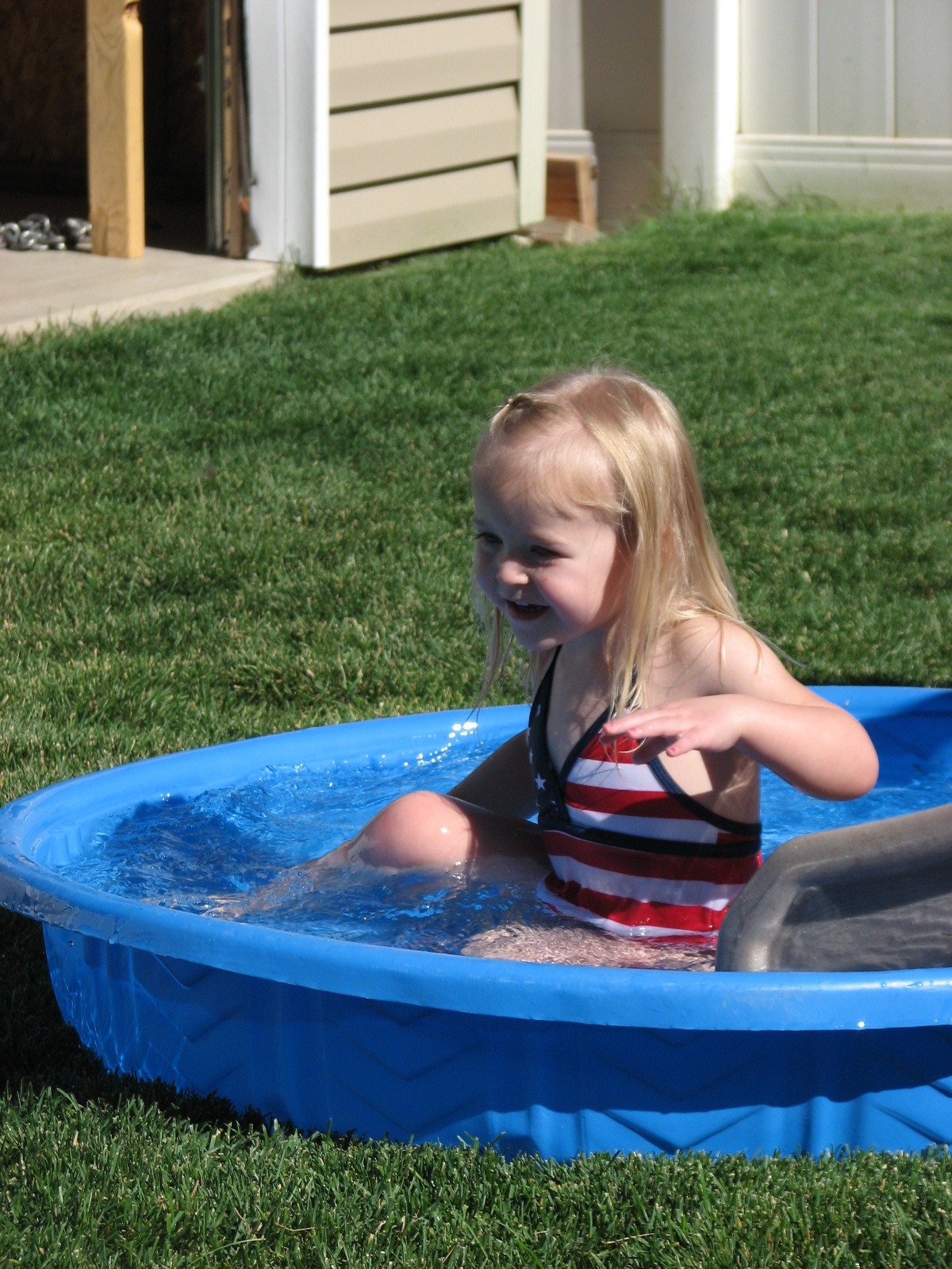 First thing that morning Adlanna was playing in the spinklers with Bailey and ran on the wet cement which was slippery, her feet slipped out from underneath of her and her face hit the pavement... I heard it and shutter to think about it :( her ouchie was a good one, but she healed within a week..