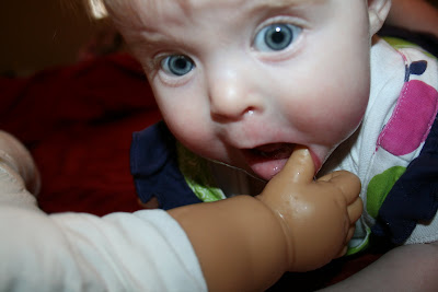 we have a doll that is a thumb sucker... and it wasn't using it's thumb so Jenna borrowed it.